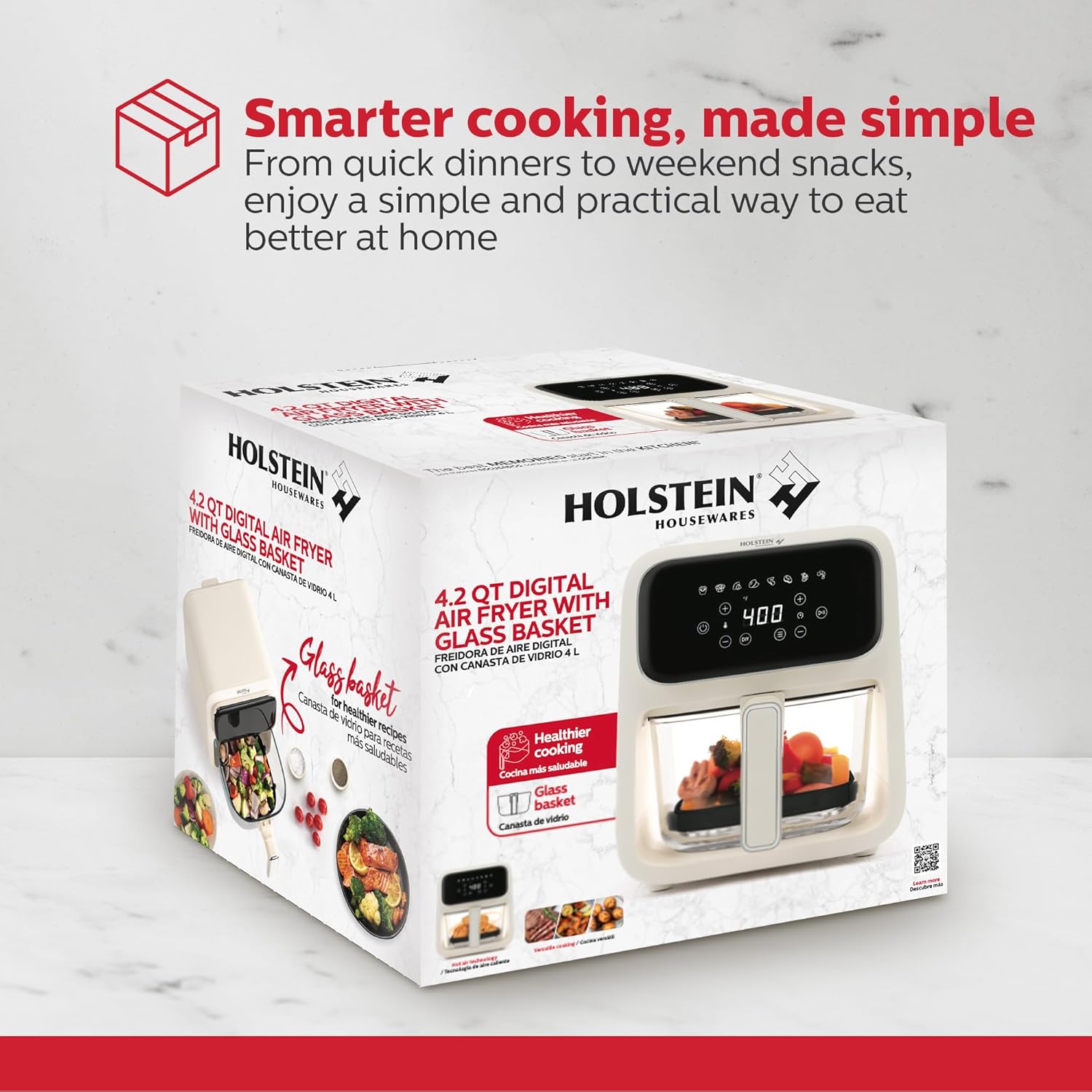 - Convenient glass basket design: Transparent basket lets you monitor food while it cooks without opening the fryer, helping retain heat and ensuring consistent results.