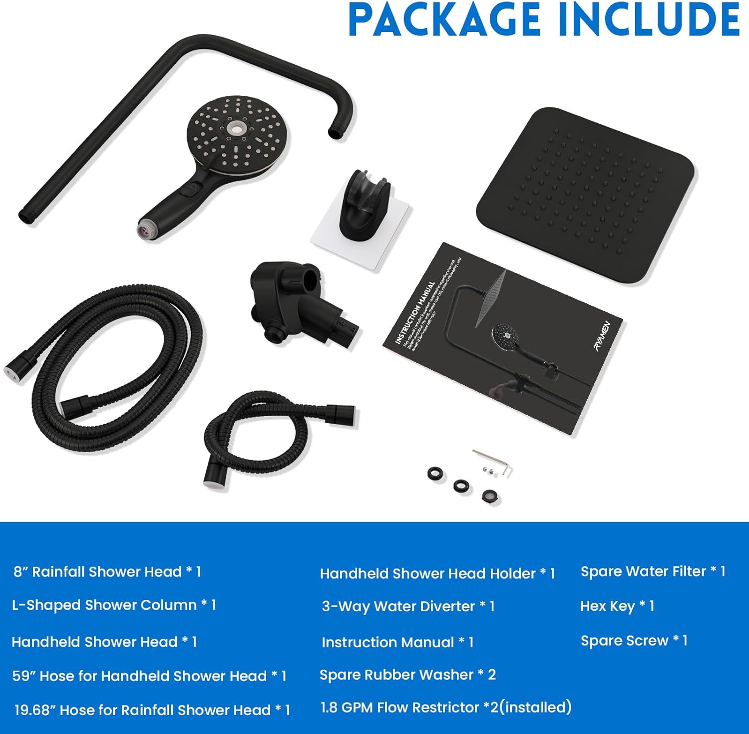 - Luxurious 8” Rainfall Shower Head: Enjoy a full, relaxing experience with a wide rainf shower head with hadheld that mimics the sensation of a tropical downpour. The 360° rotating joint and 81 silicone nozzles ensure long-lasting performance and prevent the build-up of lime and hard water for easy maintenance.